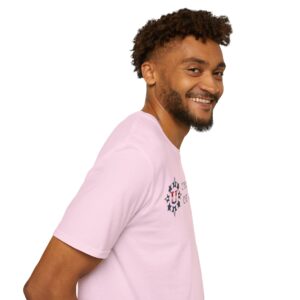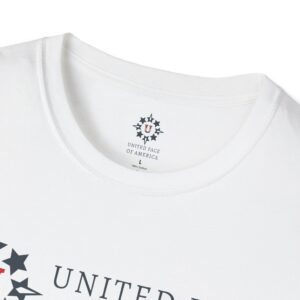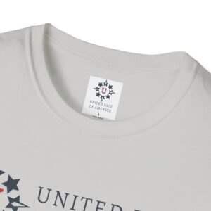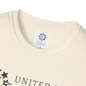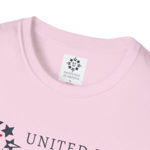 This unisex softstyle t-shirt exudes a relaxed vibe, yet packs the powerful message of Love, Unity and Community. Crafted from lightweight, 100% ring-spun cotton, it feels incredibly soft against the skin and is suitable for year-round wear. Classic fit and crew neckline. Sizes S to 5XL. Five colors available. Let’s joyfully celebrate America, together!