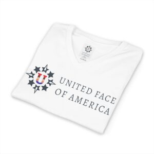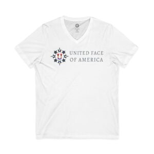 Show your community support coming and going with this simple and good-looking T. Two sided design (the back is shown here), this soft jersey T is comfortable enough to wear all day long. It has a flattering V-neck style. Short sleeves. Sizes S – 2XL. Layers well and provides a quiet, civil-minded vibe. Love, Unity, Community.